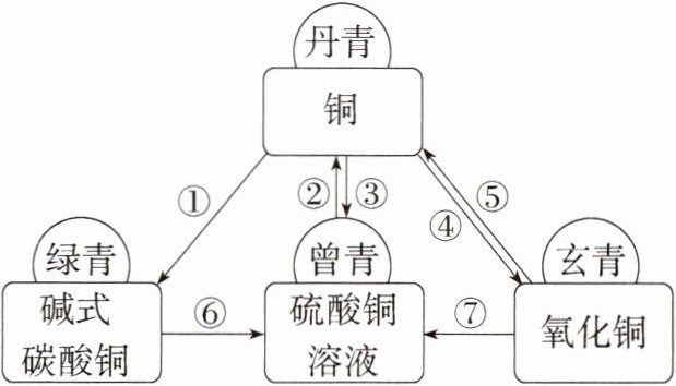 (写一个即可)。(2)要实现“丹青”到“绿青”的转变,需要铜与氧气、水和____