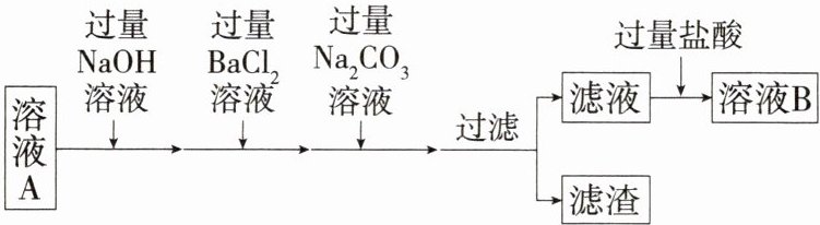 D.经过一系列除杂操作后,最终得到溶液B中的溶质只有NaCl