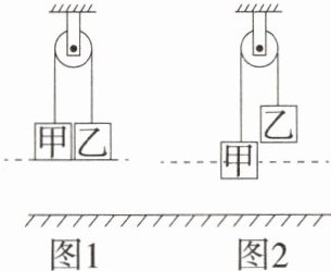 9. 新 课标 科学思维 [2024杭州保俶塔实验学校二模,☆☆]将甲、乙两物体用细线相连并绕过定滑轮,使两物体距离地面相同高度,如图1所示。当由静止自由释放后,甲物体下降,乙物体上升,如图2所示。若不计摩擦,则物体在运动过程中,乙的动能____