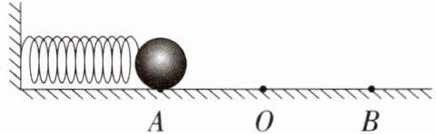 8. [2025温州鹿城期中,☆☆]如图所示,在光滑的水平台面上,一轻质弹簧左端固定,右端连接一金属小球,O点是弹簧保持原长时小球的位置。压缩弹簧使小球至A位置,然后释放小球,小球就在AB间做往复运动(已知AO= OB)。不计空气阻力,小球从A位置运动到B位置的过程中,下列判断正确的是 (