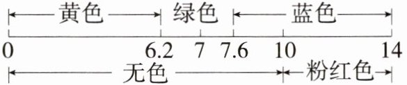 )A指示剂在不同pH溶液中的颜色