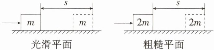 A 由题意知,先后两次用同样大小的力,将不同质量的物体在不同的水平面上分别移动相同的距离,根据$W=Fs$可知它们做功相等;又因为两次所用时间相同,根据$P=W/t$知它们做功的功率大小相同。故选A。