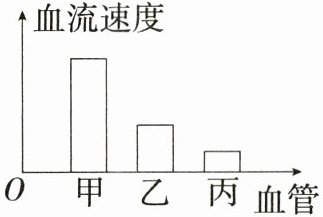 答案 C 解析 动脉、静脉和毛细血管三种血管中,血流速度最快的是动脉,所以血管甲代表动脉,A错误。血管乙内血流速度介于甲、丙之间,属于静脉,若静脉受伤出血,应在伤口的远心端按压止血,B错误。动脉、静脉和毛细血管三种血管中,血流速度最慢的是毛细血管,所以血管丙表示毛细血管,其特点是管腔很细,只允许红细胞单行通过,C正确。血液在血管中沿着甲动脉→丙毛细血管→乙静脉的顺序依次流动,D错误。
