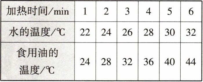 (2)根据实验思路,小梦对两种液体加热,每隔1 min测量一次温度,得到数据如表所示。则升高相同温度