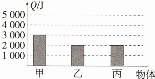 9. [2024杭州翠苑中学期中]甲、乙两物质的质量都为2 kg,丙物质质量为1 kg,三个物质升高1℃吸收的热量如图所示,下列说法中正确的是(