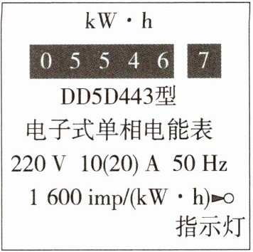 解析 电能表读数时需要注意最后一位数是小数,且读数单位为kW·h,即电能表示数是5546.7kW·h;功率为: