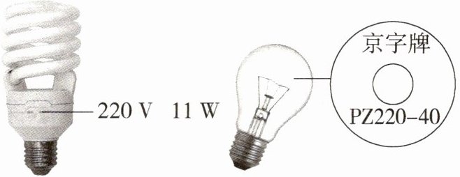 10.「2023杭州江干期末」节能灯已成为家庭照明的主要选择,如图一个11W的节能灯照明亮度和一个40W的白炽灯是相等的,两个灯泡均正常工作时,以下说法不正确的是 (