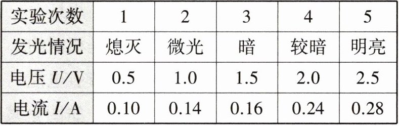 5. 为了测量一只额定电压为2.5 V的小灯泡的额定功率,某同学设计了如图所示的电路,实验中电源电压保持3 V不变,闭合开关,调节滑动变阻器,得到的实验数据如表。下列说法正确的是(