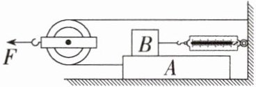 5.「2024温州鹿城期末」如图所示,用40N的力F沿水平方向拉滑轮,可使重20N的物体A以0.3m/s的速度在水平面上匀速运动。物体B重10N,弹簧测力计的示数恒为10N(不计滑轮、测力计、绳子的重力,滑轮的转轴光滑)。下列说法不正确的是(