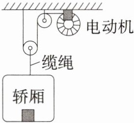 A 由图可知,$n=2$,绳子自由端移动的速度$v_{绳}=2v_{物}=2\times1m/10s=0.2m/s$,故A正确。忽略绳重和摩擦,与电动机相连的绳端拉力大小$F=\frac{1}{2}(G+G_{厢}+G_{动})=\frac{1}{2}\times(5N+20N+5N)=15N$,故B错误。拉力F做功的功率$P=Fv_{绳}=15N\times0.2m/s=3W$,故C错误。该滑轮组的机械效率$\eta=W_{有用}/W_{总}=5N\times1m/(15N\times2m)\approx16.7\%$,故D错误。故选A。