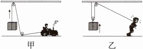 C 甲方式中,两个滑轮都是定滑轮,忽略绳子的重力及滑轮与绳子的摩擦,绳子的拉力应该为600N,故A错误。乙方式中,人对绳子的拉力$F=\frac{1}{2}(G+G_{动})=\frac{1}{2}×(600N+20N)=310N$,故B错误。根据功的原理可知使用任何机械都不省功,故C正确。甲方式中的两个滑轮都是定滑轮,不计绳重和摩擦,则不需要做额外功,机械效率为100%;乙方式中有一个动滑轮,需要做额外功,机械效率小于100%,故D错误。故选C。