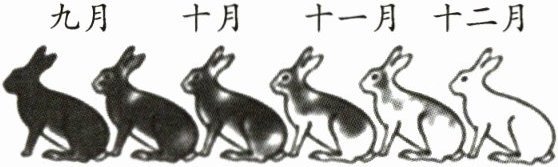 在高纬度地区,环境温度随季节变化较大,北美野兔会通过改变毛的颜色来更好地伪装自己。北美野兔从秋季开始一直到冬季,毛色会慢慢改变,如图所示。