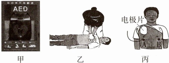资料1 AED(如图甲)是一种急救设备。将两电极片贴于患者身上的指定位置,设备会在短时间内产生电流经过心脏,使其恢复自主规律跳动。
