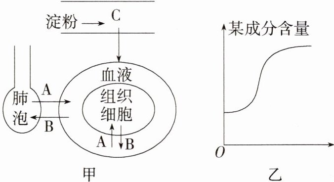 11. [2024温州鹿城期末]如图甲为人体部分生理活动过程的示意图,其中A、B、C表示不同的物质。
