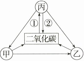答案 B 解析 分析题图可知,图中只有丙能吸收二氧化碳,故其为生产者,A正确。①代表光合作用,②代表呼吸作用,B错误。森林生态系统中的生物种类和生物数量多,自动调节能力强;森林分布在较湿润的地区,C、D正确。