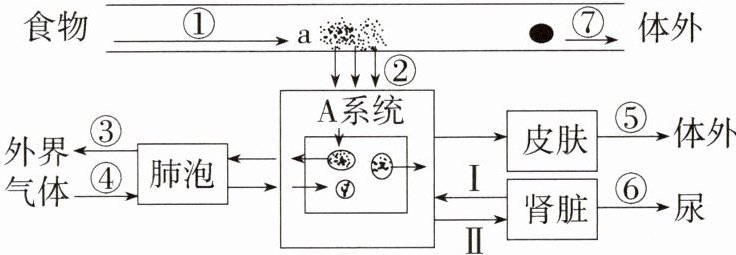 7. 「2024 江苏盐城建湖期末」如图是人体部分生理活动示意图,其中字母表示系统,数字表示生理过程。请据图回答问题。