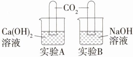 10.新探究实践在探究碱溶液的化学性质时,某兴趣小组将两支规格相同且充满二氧化碳的试管分别插入氢氧化钙溶液和氢氧化钠溶液中,摆动试管。如图所示: