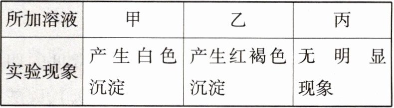 8.「★☆」已知某溶液X是稀盐酸或$Ca(OH)_2$溶液两者之一,甲、乙、丙分别是$NaNO_3$溶液、$K_2CO_3$溶液、$FeCl_3$溶液中的一种。取三等份溶液X,分别向其中滴入适量的甲、乙、丙三种溶液,产生的实验现象如下表所示。则依据实验现象做出的下列推断中,合理的是 (