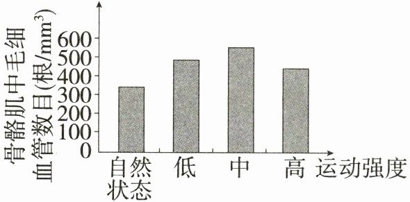 (3)根据题图可知,与自然状态组相比,不同运动强度下每立方毫米骨骼肌中毛细血管数目均增加,有利于骨骼肌细胞获得更多的营养物质和氧气。