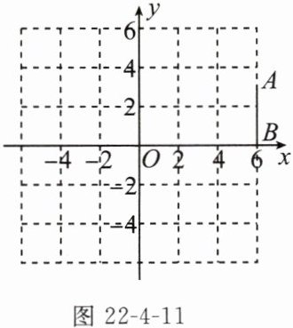 例 (教材补充例题)如图22-4-11,在平面直角坐标系中,有两点A(6,3),B(6,0)。以原点O为位似中心,把线段AB缩小为原来的$\frac{1}{3},$求出各对应点的坐标并观察对应点之间坐标的变化,你有什么发现?