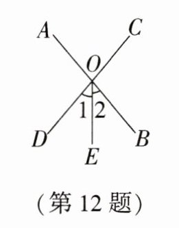 12. 如图,直线AB与CD相交于点O,∠1= ∠2,若∠AOE= 140°,则∠AOC的度数为______度.