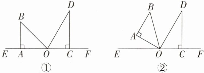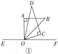 (2)如图②,三角尺COD固定不动,将三角尺AOB绕着点O以每秒4°的速度按顺时针方向旋转.在旋转过程中,两块三角尺都在直线EF的上方.设三角尺AOB的旋转时间为t秒,在旋转过程中,当OB平分∠AOD时,求出时间t的值;