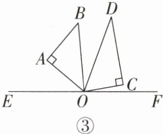 起,其中OA,OC与直线EF重合,∠AOB= 45°,∠COD= 60°,则∠BOD的度数为______;
