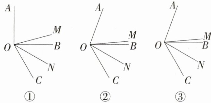 (3)如图③,当∠AOB= α,∠BOC= β时,猜想:∠MON= ______(直接写出结果).