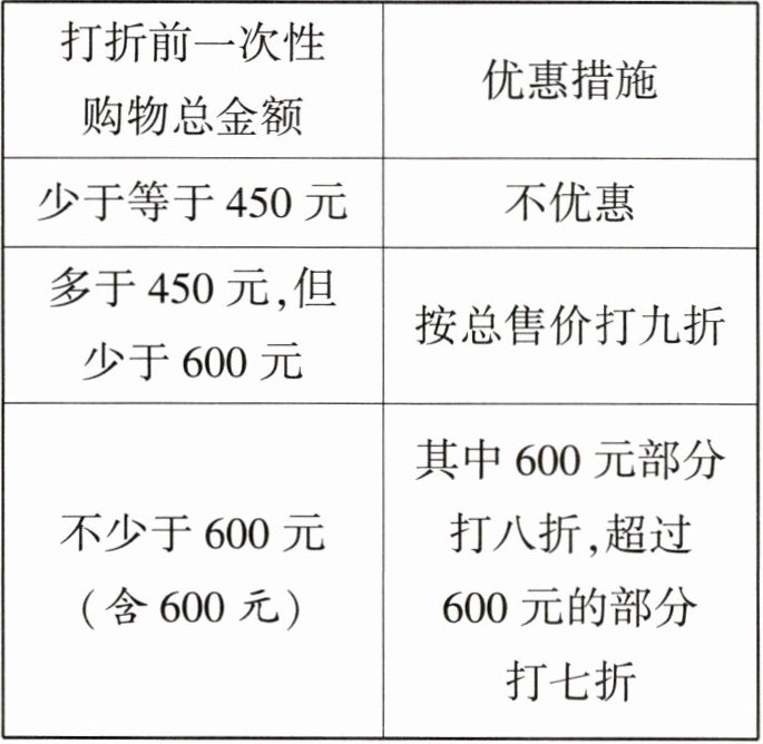 ①打折前购物金额多于450元,但少于600元,