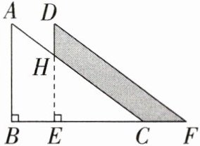 16. 如图所示是重叠的两个直角三角形,将其中一个直角三角形沿$BC方向平移得到三角形DEF$. 若$AB= 9cm$,$BE= 4cm$,$DH= 3cm$,则图中阴影部分的面积为____$cm^{2}$.