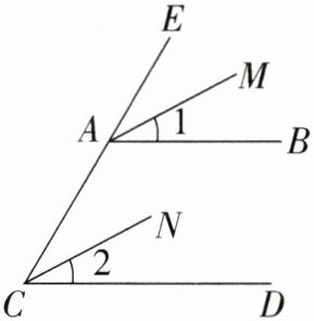 因为 $ \angle 1 = \angle 2 $,所以 $ \angle EAM = \angle ECN $,