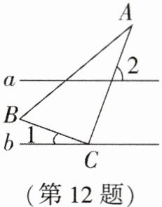 12. 如图,直线$a// b$,直角三角形$ABC的直角顶点C在直线b$上,$∠1= 20^{\circ }$,则$∠2= $____.