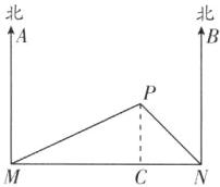 18. (8分)如图所示,有两艘油轮在海面上,油轮$N在油轮M$的正东方向,并且在$M$,$N两处分别测得小岛P在北偏东65^{\circ }和北偏西45^{\circ }$的方向,那么在$P处测得M$,$N的张角∠MPN$的度数为多少?