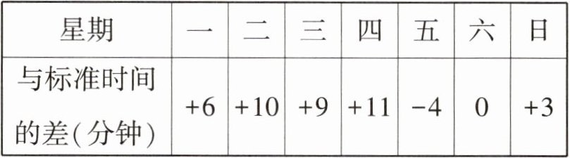 (2)15 解析:根据表格知,从星期一到星期日这七天,每天阅读时间分别为36分钟,40分钟,39分钟,41分钟,26分钟,30分钟,33分钟,所以阅读最多的一天比最少的一天多了$41-26=15$(分钟)。