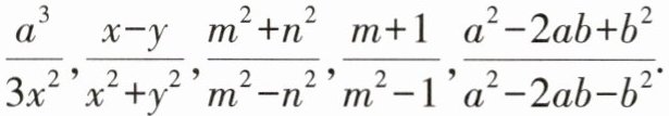 $\frac{a^{3}}{3x^{2}}$,$\frac{x-y}{x^{2}+y^{2}}$,$\frac{m^{2}+n^{2}}{m^{2}-n^{2}}$,$\frac{m+1}{m^{2}-1}$,$\frac{a^{2}-2ab+b^{2}}{a^{2}-2ab-b^{2}}$。
