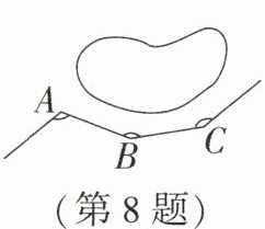 8. 如图,一条公路修到湖边时,需拐弯绕湖而过,如果第一次拐的角$ \angle A 是 120 ^ { \circ } $,第二次拐的角$ \angle B 是 150 ^ { \circ } $,第三次拐的角是$ \angle C $,这时的道路恰好和第一次拐弯之前的道路平行,则$ \angle C $是 ()