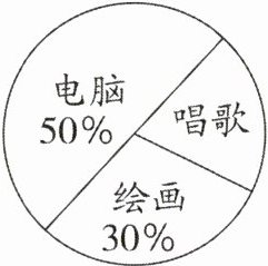5. 如图所示是七年级(1)班参加课外兴趣小组(每个人只参加一个课外兴趣小组)人数的扇形统计图,则表示唱歌兴趣小组人数的扇形的圆心角度数是 ()