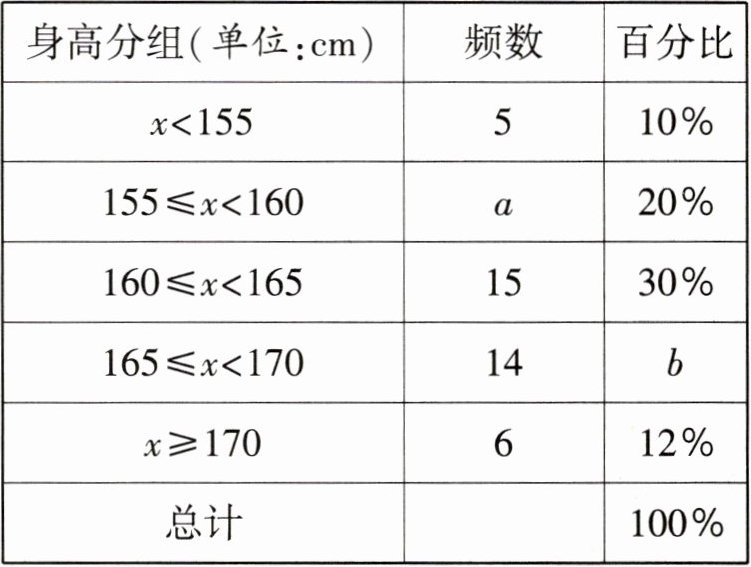(3)该校九年级共有600名学生,估计身高不低于165cm的学生大约有多少人?