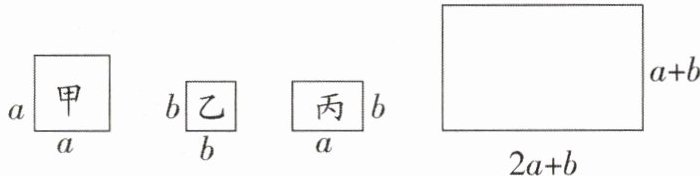 7. 有若干张如图所示的正方形和长方形卡片,如果要拼成一个长为 $(2a + b)$,宽为 $(a + b)$ 的长方形,那么需要的甲类、乙类、丙类卡片的数量分别是()
