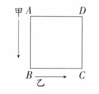 8. 如图,沿着边长为$10m$的正方形,按$A→B→C→D→A→…$的方向,甲从$A点以65m/min$的速度行走,乙从$B点以72m/min$的速度行走,当乙第一次追上甲时在正方形的()