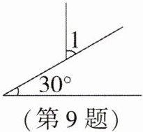 9. 如图,有一个与地面成$30^{\circ}$角的斜坡,现要在斜坡上竖一电线杆,当电线杆与斜坡成的$∠1= $______$^{\circ}$时,电线杆与地面垂直.