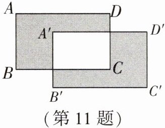 11. 如图,将长为 5 cm,宽为 3 cm 的长方形 ABCD 先向右平移 2 cm,再向下平移 1 cm,得到长方形$A'B'C'D'$,则阴影部分的面积为______$cm^{2}$.