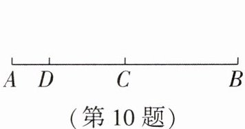10. 如图,$AB= 12cm$,若 C 为 AB 的中点,点 D 在线段 AC 上,且$CD:CB= 2:3$,则 DB 的长度为______.