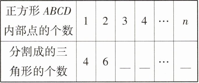(2)能.设点数为n,则$2(n+1)=4052$,解得$n=2025$.即原正方形能被分割成4052个三角形,此时正方形ABCD内部有2025个点.