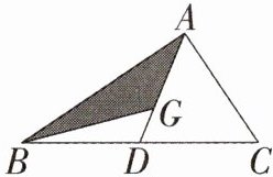 10. 如图,AD 是△ABC 的中线,G 是 AD 上的一点,且 AG= 2GD,连结 BG,若$ S_{△ABC}= 6,$则图中阴影部分面积是______。