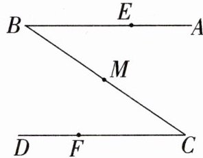 20. (10分)如图,公园有一条“$Z$”字形道路$ABCD$,其中$AB// CD$,在$E$,$M$,$F$处各有一个小石凳,且$BE= CF$,$M为BC$的中点,请问三个小石凳是否在一条直线上?说出你推断的理由.