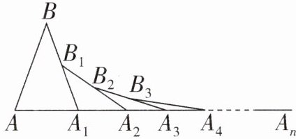 ∴∠B₁A₂A₁ = $\frac{∠BA₁A}{2}$ = $\frac{70°}{2}$。同理可得∠B₂A₃A₂ = $\frac{∠B₁A₂A₁}{2}$ = $\frac{70°}{4}$,∠B₃A₄A₃ = $\frac{∠B₂A₃A₂}{2}$ = $\frac{70°}{8}$,