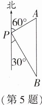 5. 如图,一艘轮船位于灯塔P的北偏东60°方向,与灯塔P的距离为30海里的A处,轮船沿正南方向航行一段时间后,到达位于灯塔P的南偏东30°方向上的B处,则此时轮船所在位置B处与灯塔P之间的距离为()
