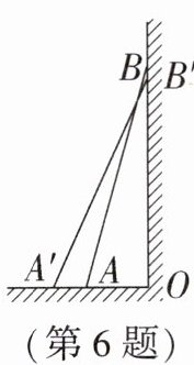 6. 如图,梯子AB靠在墙上,梯子的底端A到墙根O的距离为2m,梯子的顶端B到地面的距离为7m,现将梯子的底端A向外移动到A',使梯子的底端A'到墙根O的距离等于3m,同时梯子的顶端B下降至B',那么BB'()