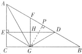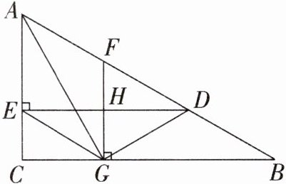22. (10分)如图,在 $\triangle ABC$ 中,$D$ 是 $AB$ 上一点,$DE\perp AC$ 于点 $E$,$F$ 是 $AD$ 的中点,$FG\perp BC$ 于点 $G$,与 $DE$ 交于点 $H$,若 $FG = AF$,$AG$ 平分 $\angle CAB$,连结 $GE$,$GD$。